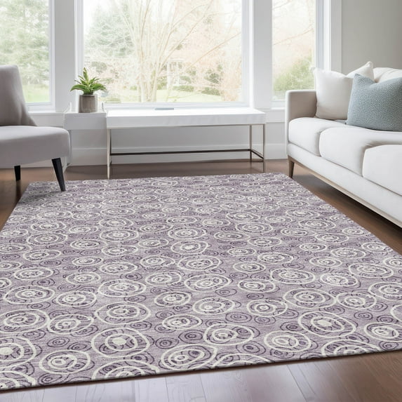 Addison Rugs Chantille Indoor/Outdoor Transitional Circles Lavender Washable Rectangle Rug, 9' x 12'