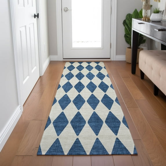 Addison Rugs Chantille Indoor/Outdoor Transitional Diamonds Navy Washable Runner Rug, 2'3" x 7'6"