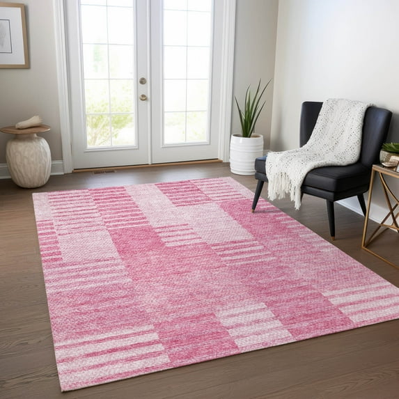 Addison Rugs Chantille Indoor/Outdoor Transitional Striped Pink Washable Rectangle Rug, 8' x 10'