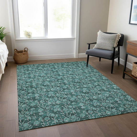 Hero image 0 of Addison Rugs Chantille Indoor/Outdoor Transitional Floral Teal Washable Rectangle Rug, 2'6" x 3'10", 0 of 5