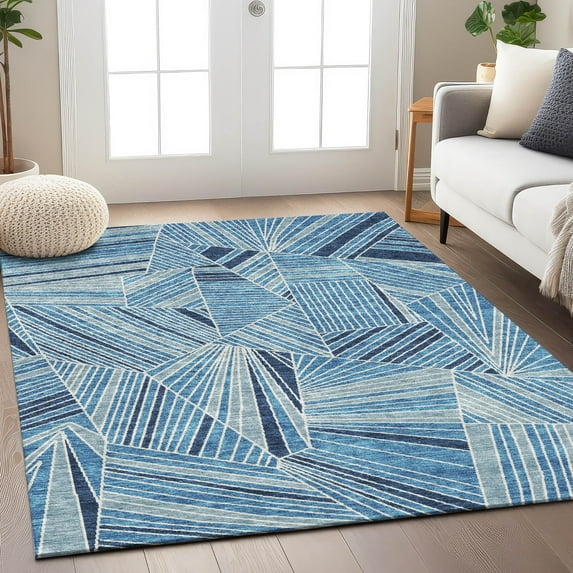 Addison Rugs Chantille Indoor/Outdoor Transitional Geometric Blue Washable Rectangle Rug, 9' x 12'