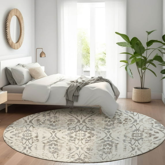 Addison Rugs Chantille Indoor/Outdoor Transitional Floral Ivory Washable Round Rug, 8' x 8'