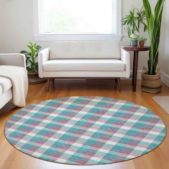 Addison Rugs Chantille Indoor/Outdoor Transitional Plaid Teal Washable Round Rug, 8' x 8'