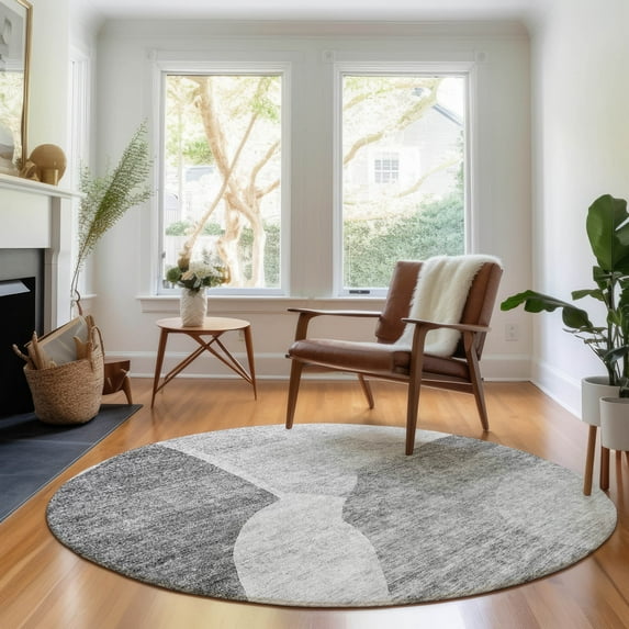 Addison Rugs Mayfield Washable Transitional Abstract Silver Round Rug, 8' x 8'