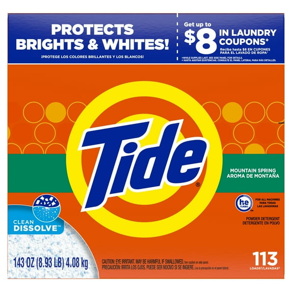 Tide Powder Laundry Detergent, Mountain Spring, 113 Loads, 143 oz $31.92 22.3 ¢/oz