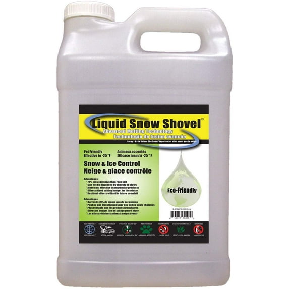 Liquid Snow Shovel by Advanced Seasonal Innovations is a professional-grade, environmentally friendly liquid ice melt designed for effective snow and ice removal. This liquid snow removal solution acts as a powerful alternative to traditional rock salt, offering a clear, odorless, non-staining, and non-tracking formula that is safe for everyday use. Effective in temperatures as low as -25°F, this deicer 2.5 gallon is pet friendly and will not harm vegetation, making it ideal for homes and businesses. The liquid form ensures easy application and is safe for use on concrete and asphalt surfaces, providing a more cost-effective option compared to granular products. Liquid Snow Shovel remains effective for up to one week or through three snow events, reducing the need for frequent reapplication. Perfect for those seeking a snow removal liquid that is both efficient and safe, this product is a reliable choice for winter weather. Trust Advanced Seasonal Innovations for your ice melting needs and experience the convenience of liquid snow shovels ice melt in a 2.5-gal. size.
