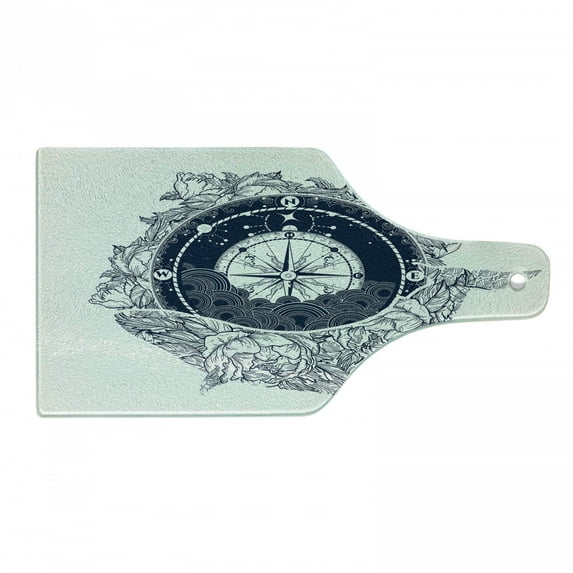 Adventure Cutting Board, Antique Marine Compass and Floral Whale Victorian Vintage, Decorative Tempered Glass Cutting and Serving Board, Wine Bottle Shape, Dark Blue White, by AmbesonneAdventure Cutting Board Antique Marine Compass Floral Whale Victorian Vintage Decorative Tempered Glass Serving Wine Bottle Shape Dark Blue White AmbAdventure Cutting Board Antique Marine Compass Floral Whale Victorian Vintage Decorative Tempered Glass Serving Large Size Dark Blue White AmbesonneAdventure Cutting Board Antique Marine Compass Floral Whale Victorian Vintage Decorative Tempered Glass Cutting Serving Board Small Size Dark Blue Wh