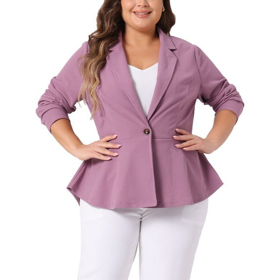 Hero image 0 of Agnes Orinda Women's Plus Size Blazer Button Notch Panel Ruffle Peplum Blazers 2X Purple, 0 of 6