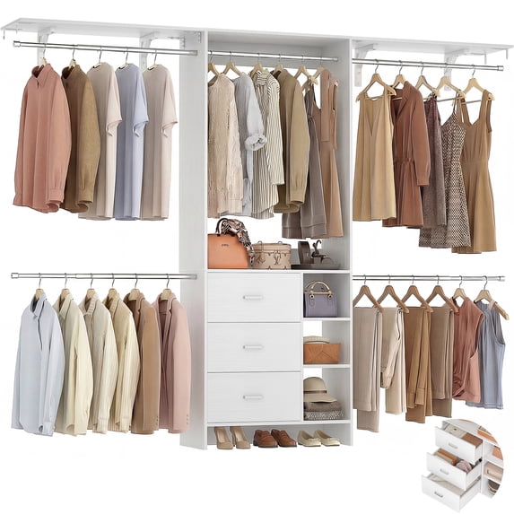 Hero image 0 of Aheaplus Closet System, Closet Organizer with 3 Wooden Drawers, 8FT Closet Organizer System, 96’’ Walk-in Closet Wardrobe Clothes Rack with Hanging Rods, Adjustable Garment Rack, Fits 5.3-9 ft, White, 0 of 7