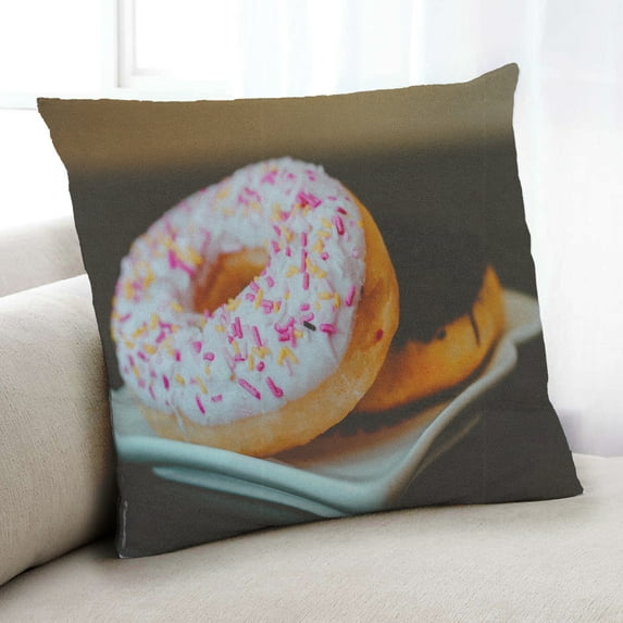 Ahgly Company Foods Donut Indoor Throw Pillow, 18 inch by 18 inch . A stylish throw pillow with designer accents to beautify any room in the home. This designer throw pillow includes insert and a hidden zipper closure for easy cover removal for cleaning. Hand or machine wash recommended as needed.