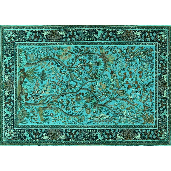 Hero image 0 of Ahgly Company Indoor Rectangle Animal Turquoise Blue Traditional Area Rugs, 2' x 5', 0 of 4