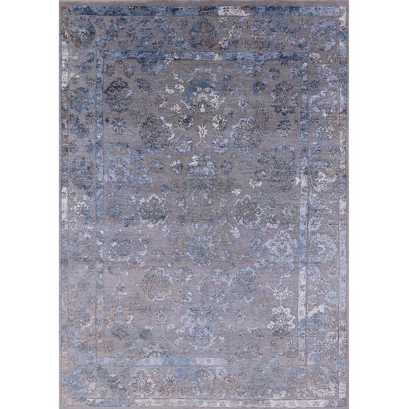 Ahgly Company Indoor Rectangle Mid-Century Modern Blue Gray Oriental Area Rugs, 2' x 4'