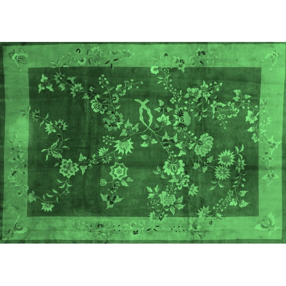 Ahgly Company Indoor Rectangle Oriental Emerald Green Asian Inspired Area Rugs, 7' x 10'