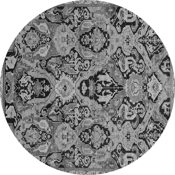 Ahgly Company Indoor Round Abstract Gray Modern Area Rugs, 8' Round