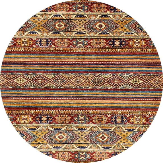 Ahgly Company Indoor Round Abstract Saffron Red Abstract Area Rugs, 3' Round