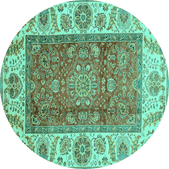 Hero image 0 of Ahgly Company Indoor Round Abstract Turquoise Blue Modern Area Rugs, 5' Round, 0 of 4