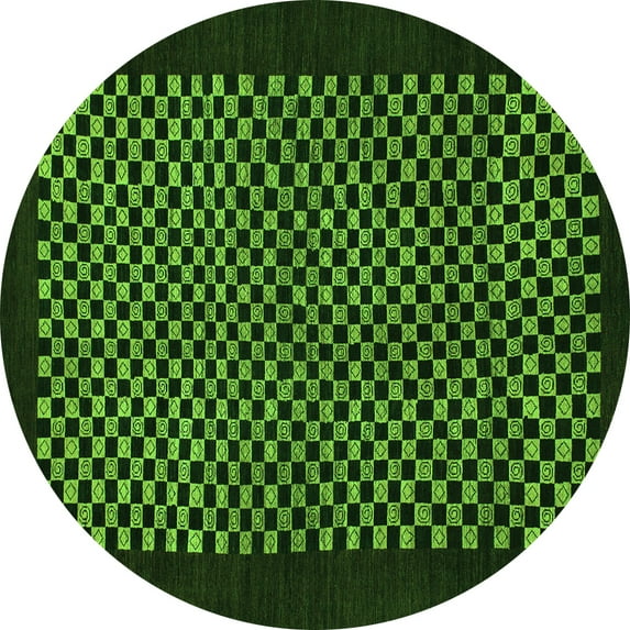 Ahgly Company Indoor Round Checkered Green Modern Area Rugs, 8' Round