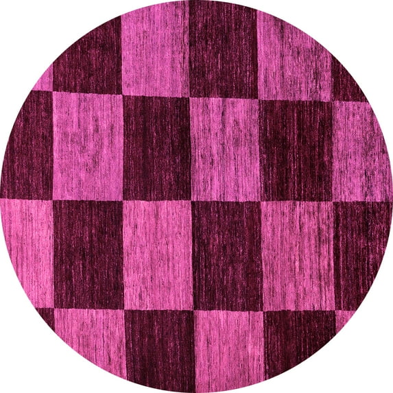 Ahgly Company Indoor Round Checkered Pink Modern Area Rugs, 7' Round