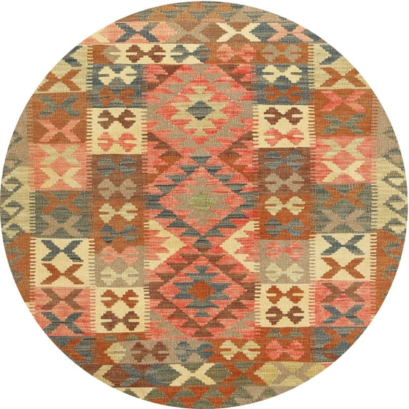 Ahgly Company Indoor Round Contemporary Sand Brown Southwestern Area Rugs, 7' Round