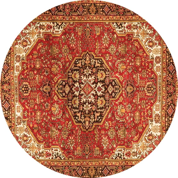 Ahgly Company Indoor Round Medallion Orange Traditional Area Rugs, 3' Round