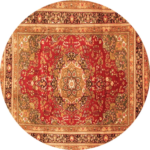 Ahgly Company Indoor Round Medallion Orange Traditional Area Rugs, 3' Round