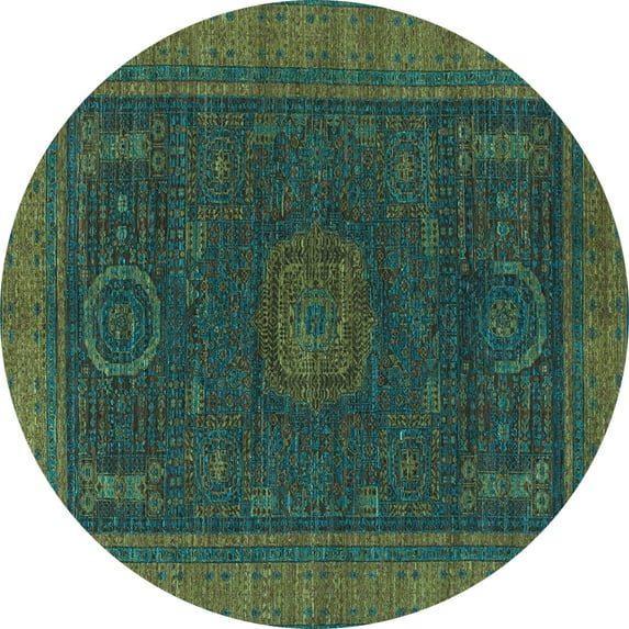 Ahgly Company Indoor Round Oriental Light Blue Modern Area Rugs, 3' Round