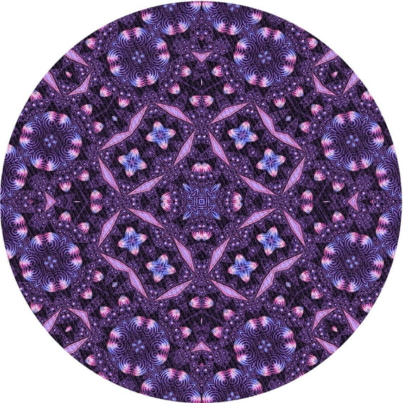 Ahgly Company Indoor Round Patterned Dark Purple Area Rugs, 6' Round