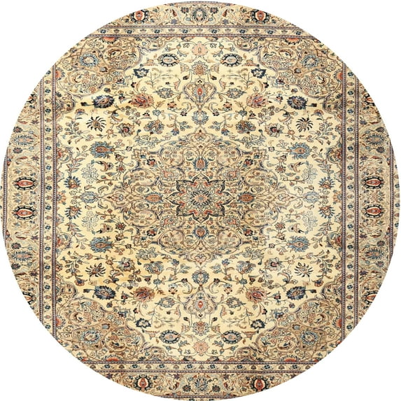 Ahgly Company Indoor Round Traditional Brown Gold Medallion Area Rugs, 4' Round