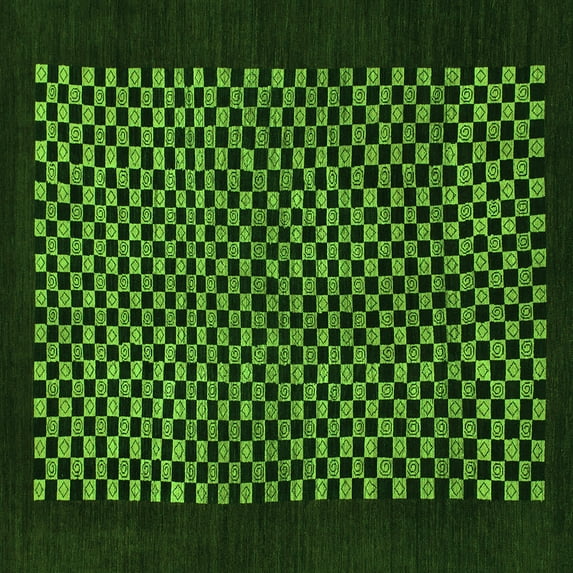 Ahgly Company Indoor Square Checkered Green Modern Area Rugs, 8' Square