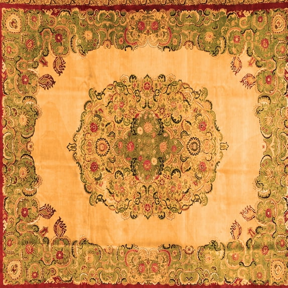 Ahgly Company Indoor Square Medallion Orange Traditional Area Rugs, 3' Square