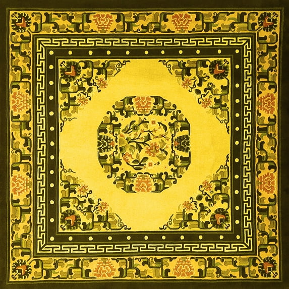 Hero image 0 of Ahgly Company Indoor Square Oriental Yellow Asian Inspired Area Rugs, 5' Square, 0 of 4
