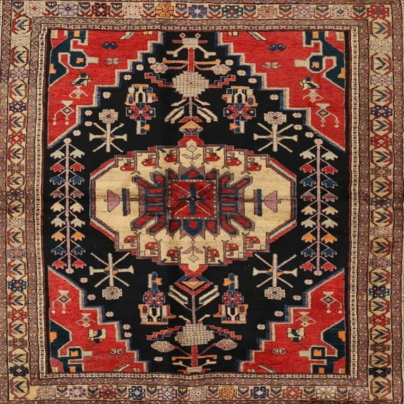 Ahgly Company Indoor Square Traditional Orange Brown Medallion Area Rugs, 5' Square
