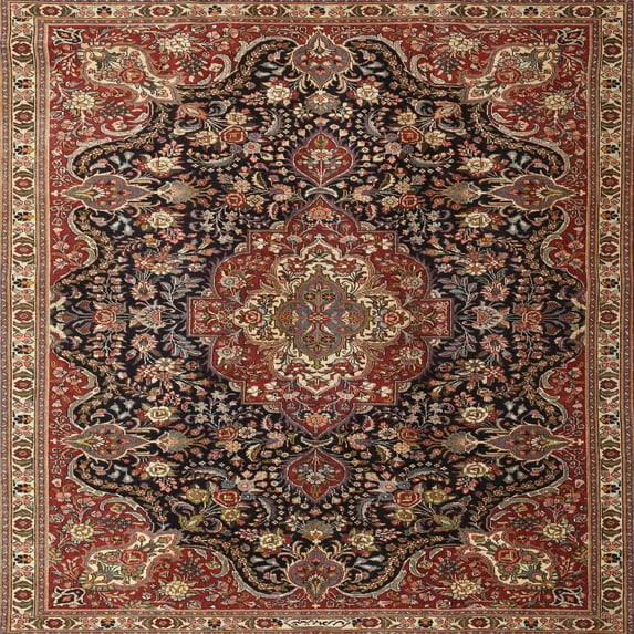 Ahgly Company Indoor Square Traditional Orange Brown Medallion Area Rugs, 5' Square