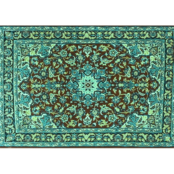 Hero image 0 of Ahgly Company Machine Washable Indoor Rectangle Oriental Turquoise Blue Traditional Area Rugs, 7' x 9', 0 of 1