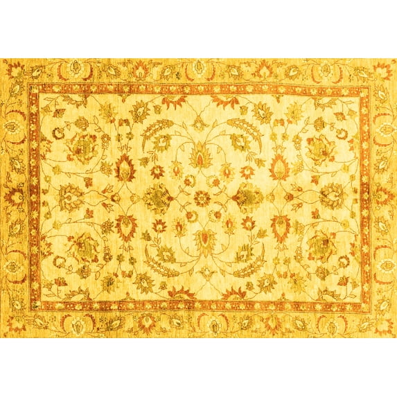 Ahgly Company Machine Washable Indoor Rectangle Oriental Yellow Traditional Area Rugs, 5' x 7'