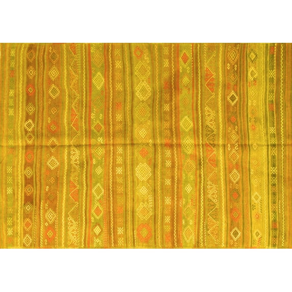 Ahgly Company Machine Washable Indoor Rectangle Southwestern Yellow Country Area Rugs, 7' x 10'