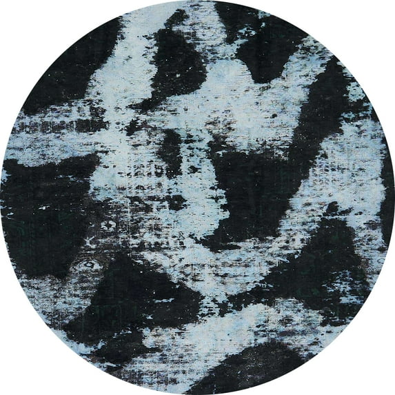 Ahgly Company Machine Washable Indoor Round Abstract Columbia Blue Area Rugs, 8' Round