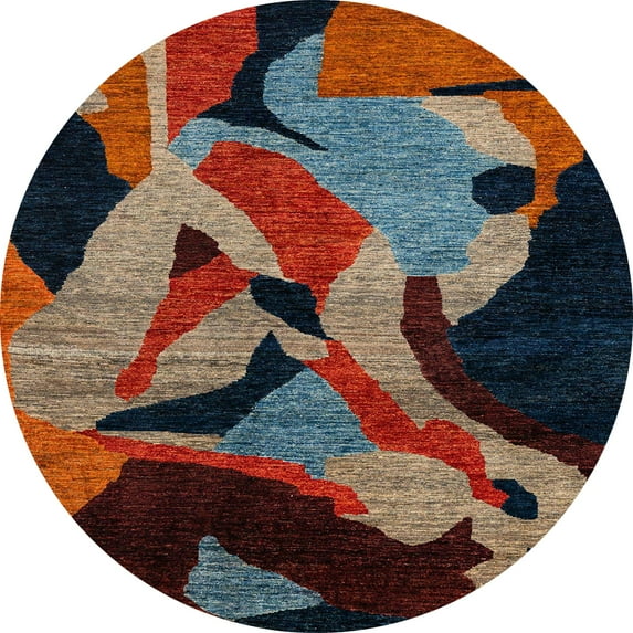 Hero image 0 of Ahgly Company Machine Washable Indoor Round Abstract Dark Almond Brown Area Rugs, 3' Round, 0 of 7