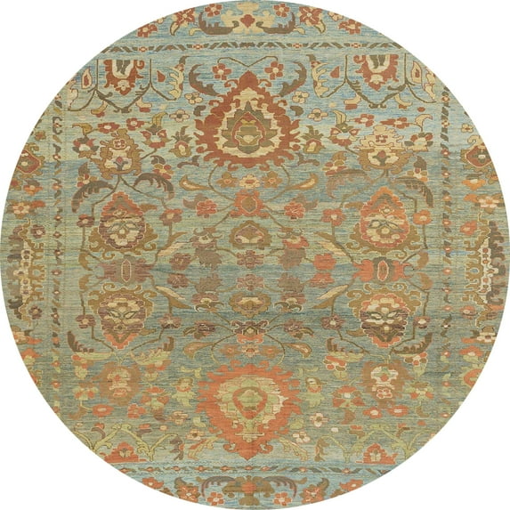 Hero image 0 of Ahgly Company Machine Washable Indoor Round Abstract Dark Khaki Green Area Rugs, 8' Round, 0 of 7