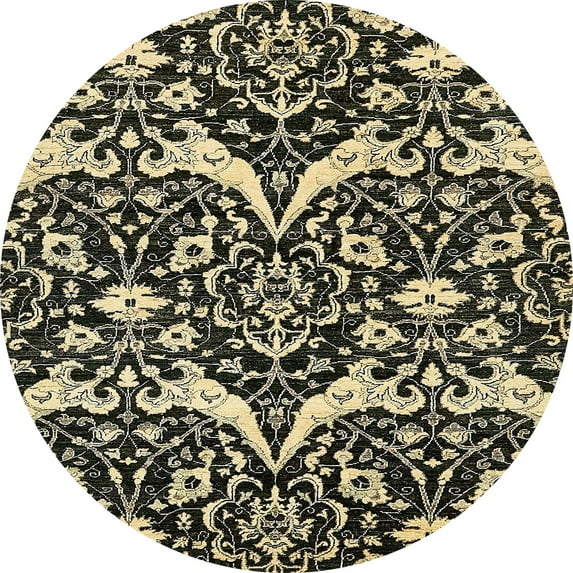 Ahgly Company Machine Washable Indoor Round Abstract Ginger Brown Green Area Rugs, 3' Round