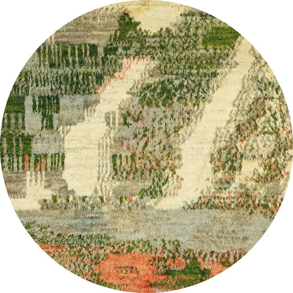 Hero image 0 of Ahgly Company Machine Washable Indoor Round Abstract Ginger Brown Green Area Rugs, 8' Round, 0 of 7