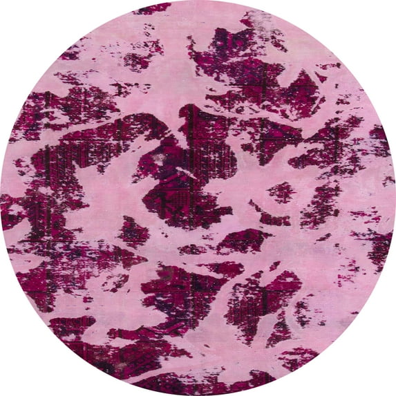 Ahgly Company Machine Washable Indoor Round Abstract Hot Pink Area Rugs, 7' Round