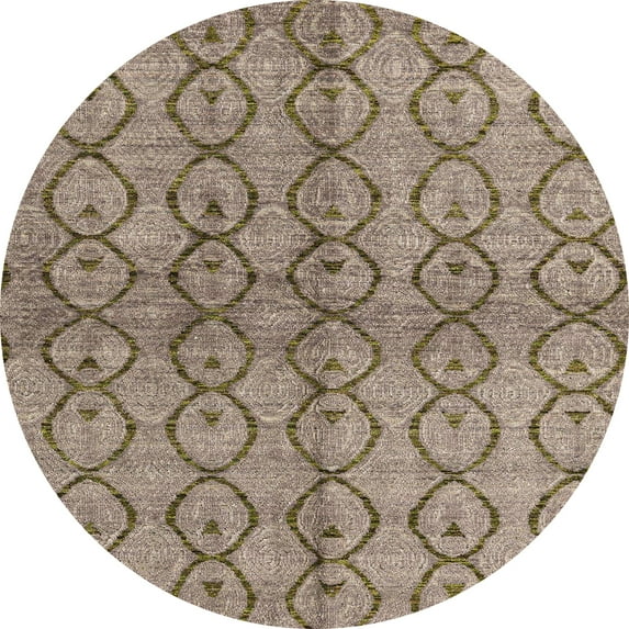 Ahgly Company Machine Washable Indoor Round Abstract Light French Beige Brown Area Rugs, 5' Round