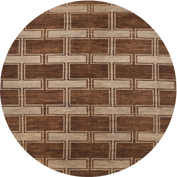 Ahgly Company Machine Washable Indoor Round Contemporary Tiger Orange Brown Area Rugs, 4' Round