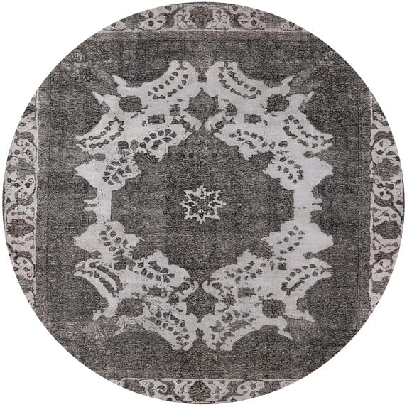 Ahgly Company Machine Washable Indoor Round Industrial Modern Gray Area Rugs, 6' Round