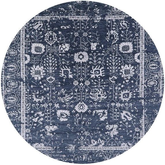 Ahgly Company Machine Washable Indoor Round Industrial Modern Lapis Blue Area Rugs, 8' Round
