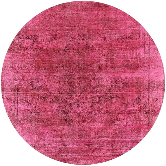 Ahgly Company Machine Washable Indoor Round Industrial Modern Violet Red Pink Area Rugs, 8' Round