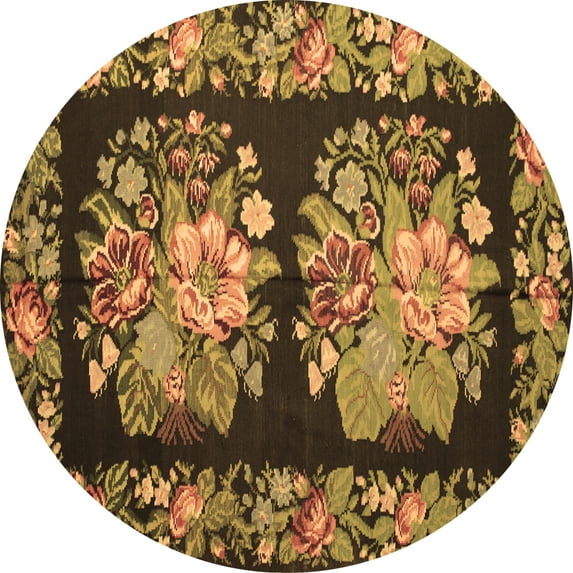 Ahgly Company Machine Washable Indoor Round Medallion Brown French Area Rugs, 5' Round