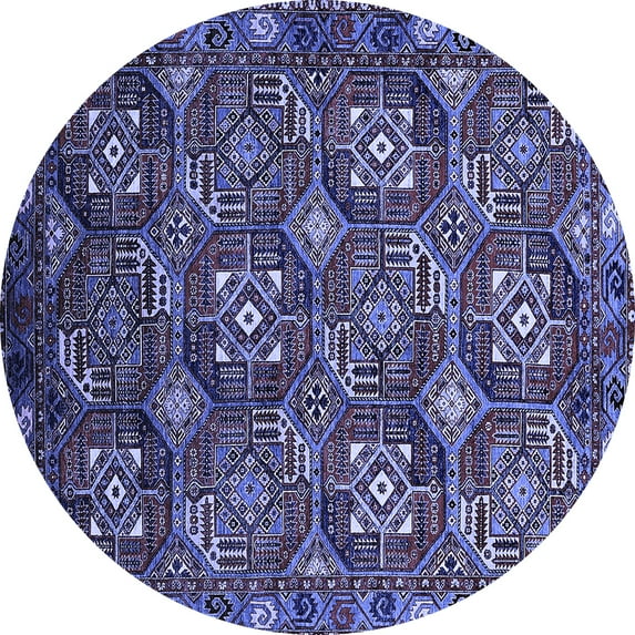 Hero image 0 of Ahgly Company Machine Washable Indoor Round Oriental Blue Industrial Area Rugs, 3' Round, 0 of 4