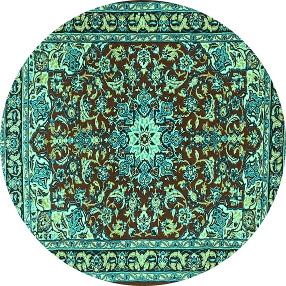 Hero image 0 of Ahgly Company Machine Washable Indoor Round Oriental Turquoise Blue Traditional Area Rugs, 3' Round, 0 of 4